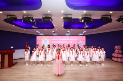 会议开始前,两片鲜红的瓣花一张一合的动着集团为参会的中关村二小学生带来了礼物,孩子们在翻阅中如同找到知己一般,喜悦溢于言表,因为她们看到了可爱的爱心大使元七七同学。当嘹亮的歌声响起,学生代表们在国旗下歌唱、宣言,散发出阵阵青春朝气,也预示着发布会开始。